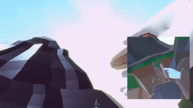 Expanding on the topic of creating simple and intuitive mechanics, we thought to mainly focus on things people probably were already familiar with on PC and to make us of very simple gameplay in the VR headset. The goal was to create a harmony between the two that would still remain memorable. So every mechanic or puzzle in the game uses one or no buttons at all, seeing the giant VR player in a protective role, often times holding their hand guardingly above their small PC-bound friend.